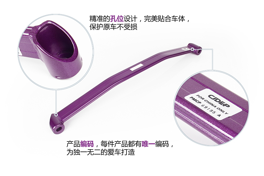 装在前桥与底盘前部的连接位置。前面两个孔位用的是原车螺丝,后面两个孔位用的是CIDEP狮特专配螺丝。