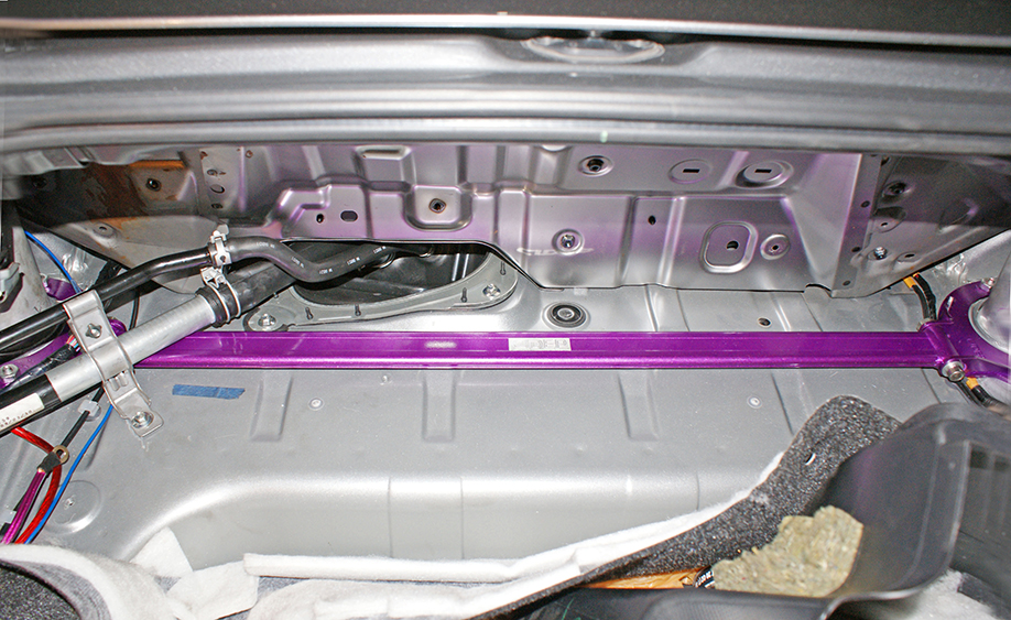 ③ 装上CIDEP狮特后顶吧脚座,带上原车后避震塔顶螺丝(先别拧紧);