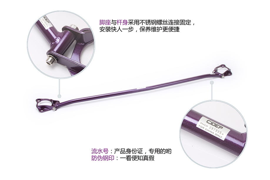 4、放入前顶吧杆体调好适合间隙,带上螺丝;