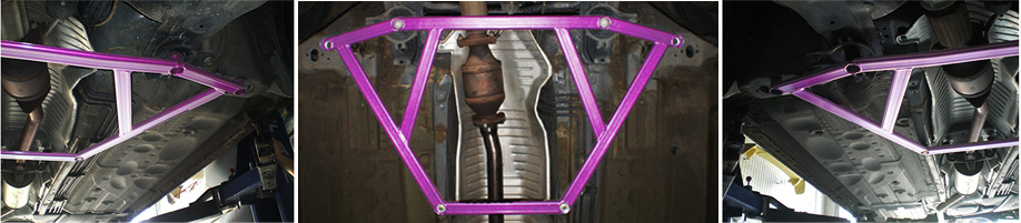 在三元催化底下,四杯位长杆向前安装其中中间两个杯位安装于副车架与主车架的连接位置,用的原车螺丝,外边两个杯位安装在主车架上,用的是CIDEP狮特专配配件,短杆的两个杯位安装在排气管两边中梁上,用的是CIDEP狮特专配配件。