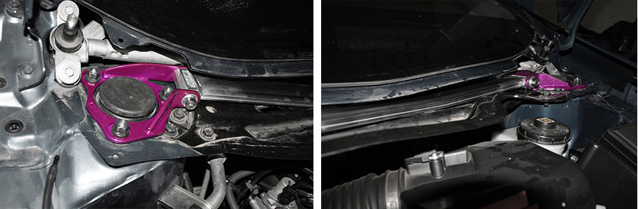 3、松下避震塔顶螺丝,放上前顶吧脚位,带上螺丝(先别拧紧);