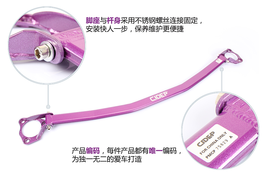 4、放入前顶吧杆体调好适合间隙,带上螺丝;