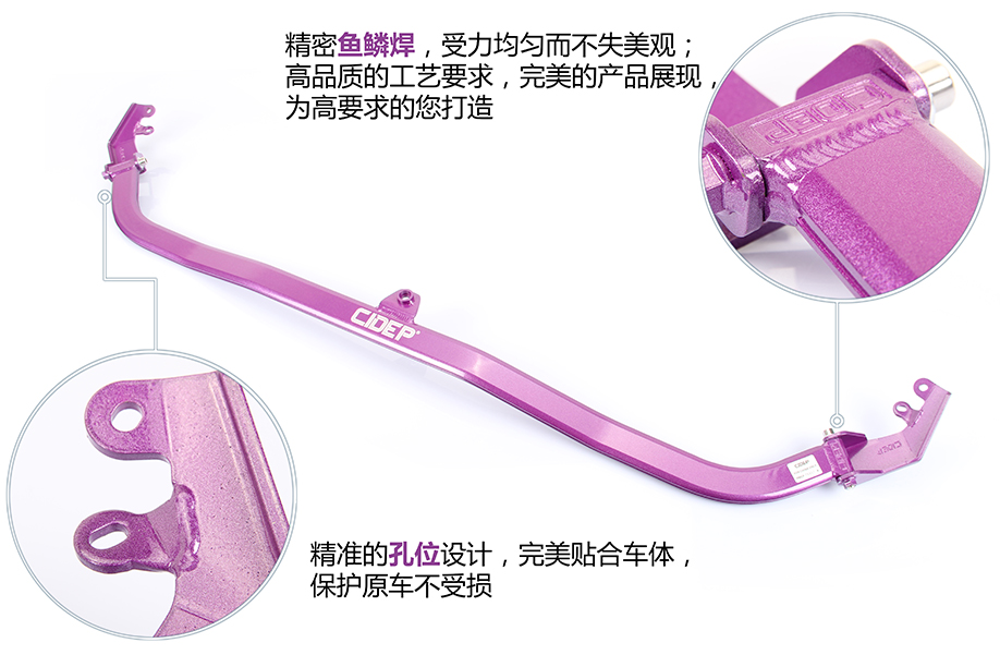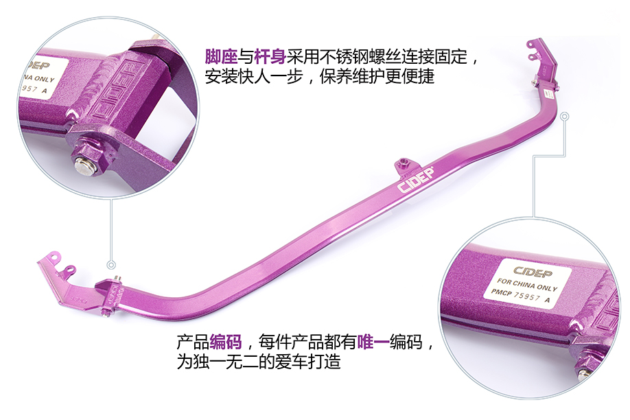 5、杆身中间凸出孔位使用CIDEP狮特专配配件与车架连接;