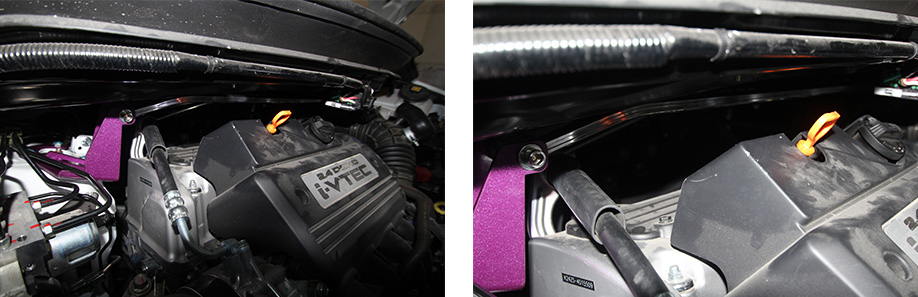 2、松开刹车油壶与行车电脑的螺丝,再松开塔顶螺丝进行安装,放上前顶吧脚位,带上螺丝(先别拧紧);