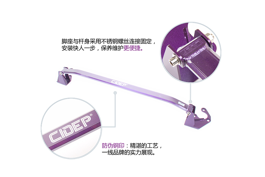 3、放入前顶吧杆体调好适合间隙,带上螺丝;
