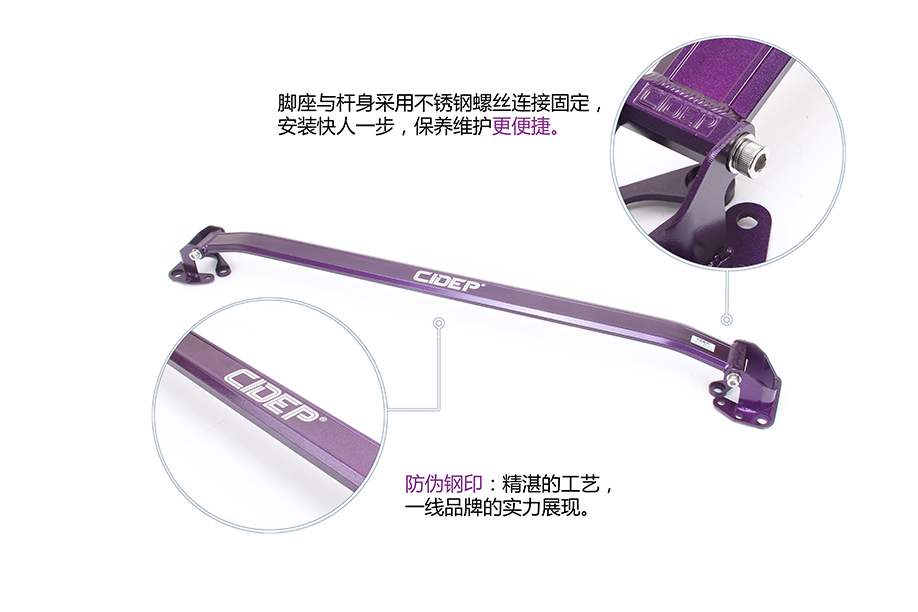 3、放入前顶吧杆体调好适合间隙,带上螺丝;