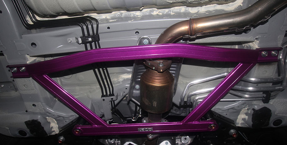 安装前先拆出前下摆臂与前副车架之间的两颗固定螺栓 ,然后把前下底架放上并对应好螺孔位置即可安装,前下底架前端的固定位置需要使用前下底架专用配件进行固定。