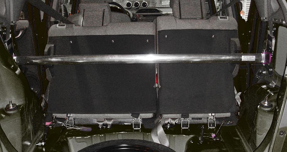 2、拆下后排座椅安全带机固定螺丝,装上CIDEP狮特后顶脚座,使用原车螺丝;