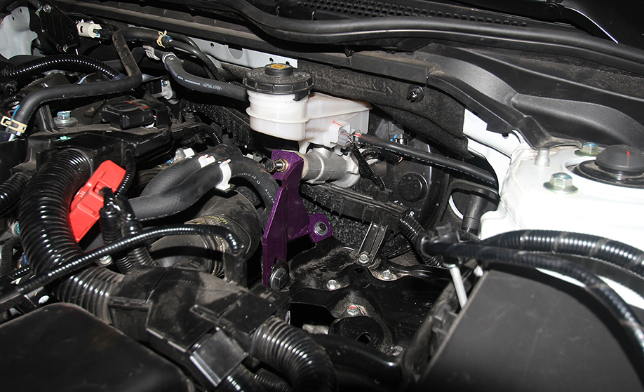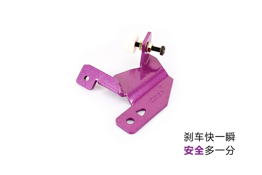 由于刹车总泵固定在防火墙上,当踩车时防火墙作为总泵支点强度不够,会导致刹车总泵向前移动使刹车脚感变差,刹车总泵顶能顶住总泵使其不能向前移动,刹车的有效行程增加,从而大大提升刹车脚感,提高刹车灵敏度,提升行驶安全。