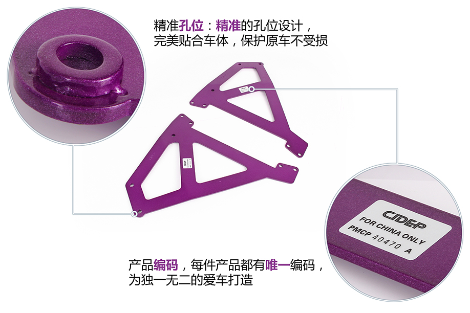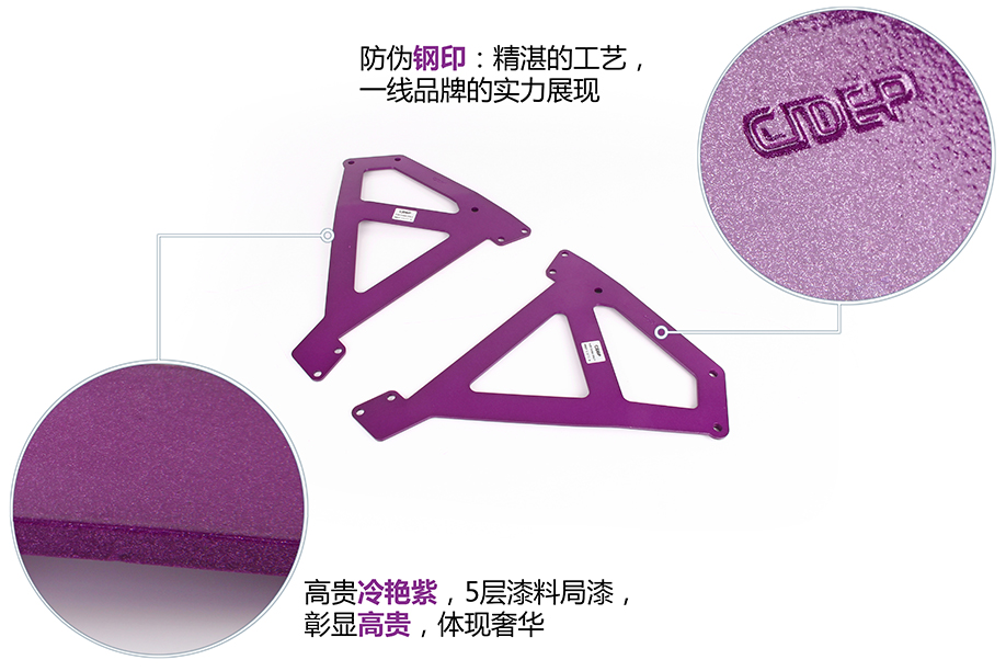 4、先装上前门固定螺丝,固定叶子板拉杆,再使用CIDEP狮特专配配件,固定另外三个孔位;