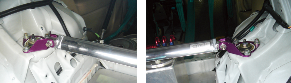 3、装上CIDEP狮特后顶吧脚座,拧紧原车后避震塔顶螺丝;