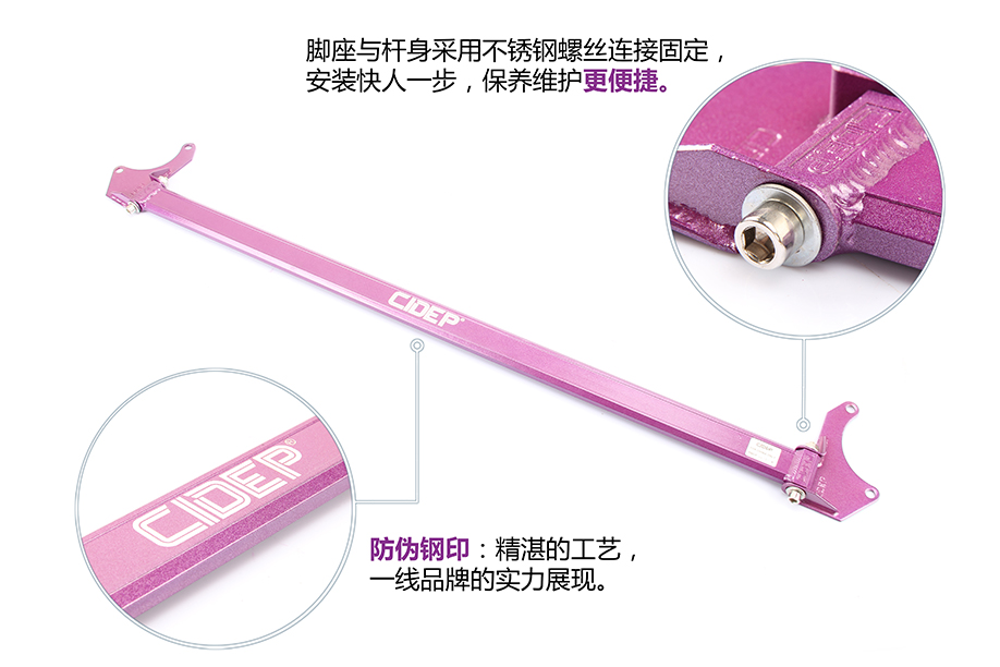4、放入前顶吧杆体调好适合间隙,带上螺丝;
