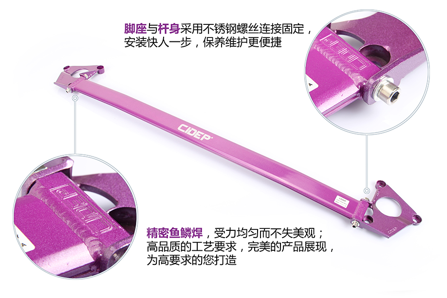 ③ 放入前顶吧杆体调好适合间隙,带上螺丝;