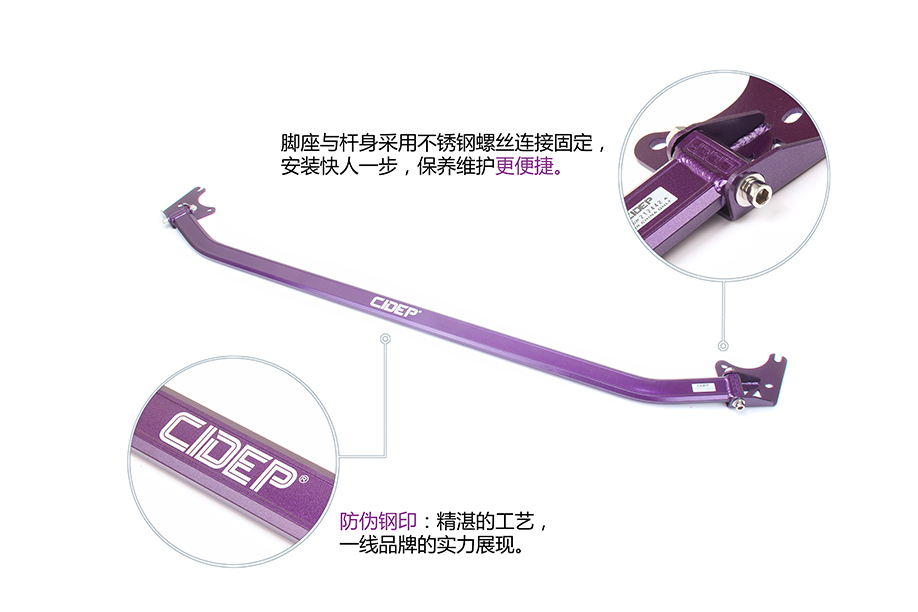 前顶吧脚座,对正孔位安装CIDEP狮特专配辅助螺丝,带上螺丝(先别拧紧);